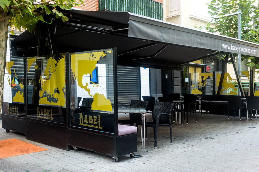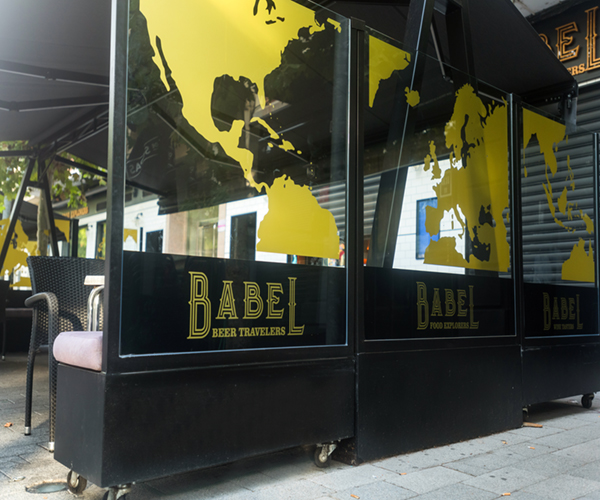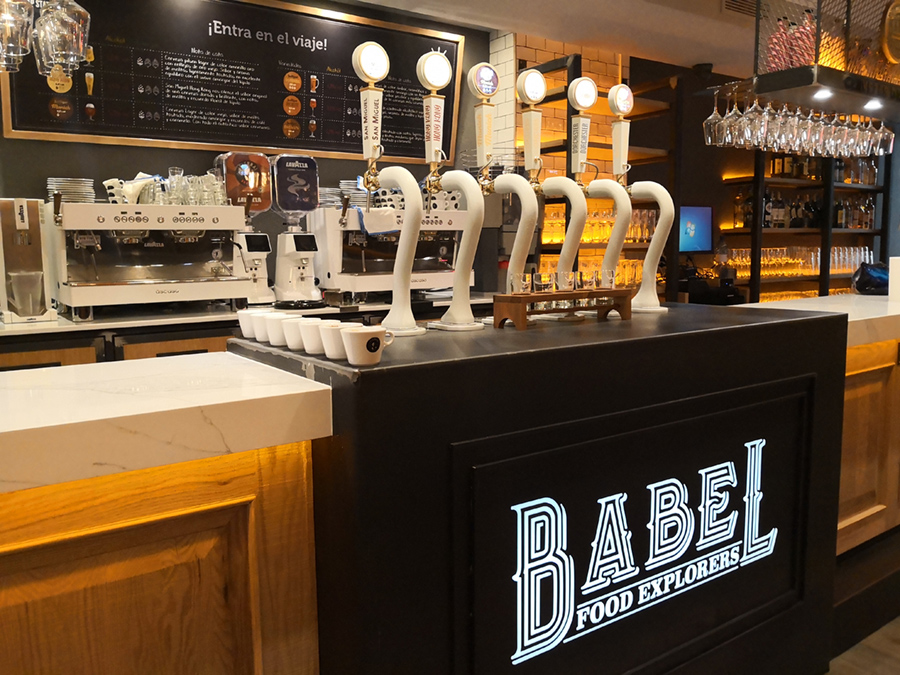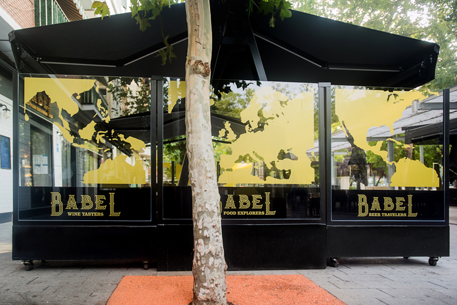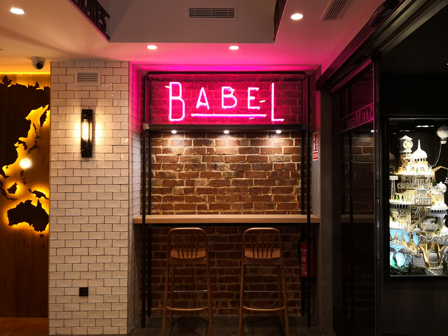 Del trabajo realizado para Babel destacan, en el exterior, la terraza realizada a través de bancos modulares, así como los rótulos luminosos y vinilos.