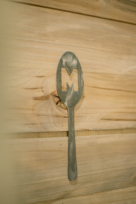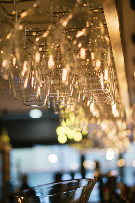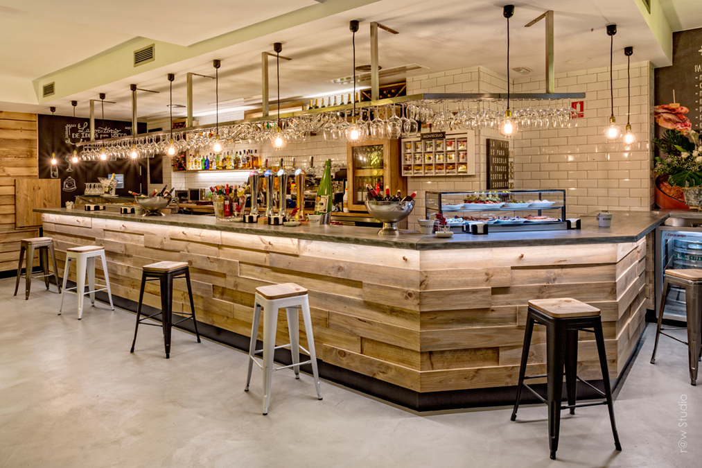 De los trabajos llevados a cabo para este bar restaurante destaca especialmente el mueble cuelga copas ya que resulta un elemento muy llamativo por la forma y disposición de la barra.